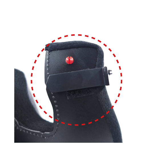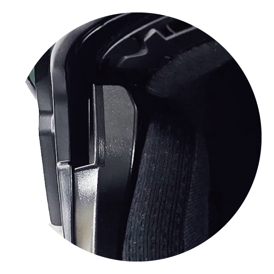 ヘルメットをかぶり、メガネを装着した状態で、メガネのつるの位置を確認します。