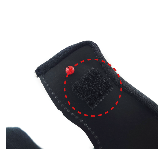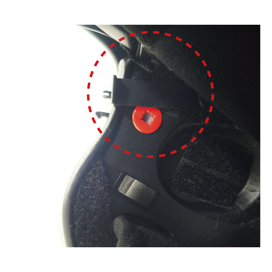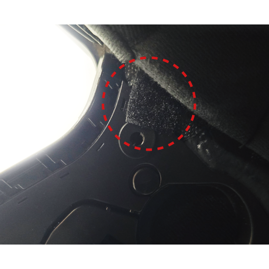 写真のように面ファスナーをヘルメット内側またはパッドの内側に取り付けます。